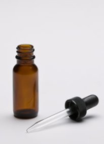 Dropper assembly includes a black polypropylene screw top, rubber bulb and glass dropper tube.